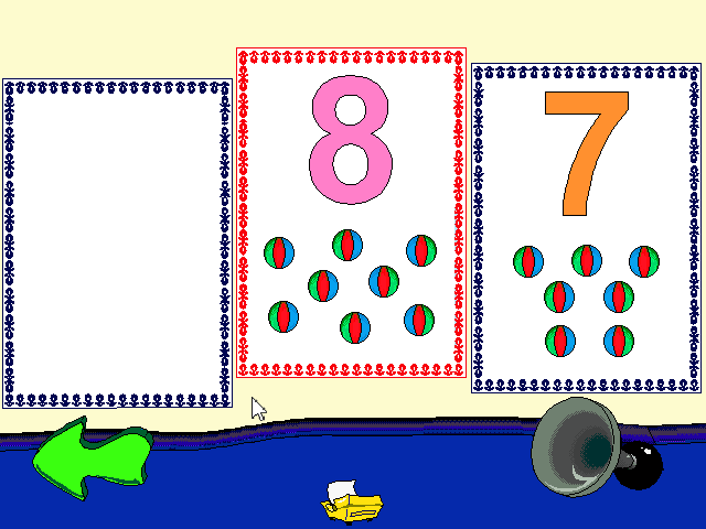 На стеллаже расставлены кубики и другие объёмные геометрические фигуры. Это задания как раз по геометрии - нужно искать на экране фигуры, ориентируясь на голосовые комментарии на испанском языке. Типов заданий три: первый - фигуры различаются формой, второй - цветом, третий - размером. В четвёртом задании нужно делать другое - выбирать ту фигуру, которую показывает мальчик, что совсем уж просто даже для целевой аудитории. Чтобы вернуться назад в комнату, нужно нажать на мышонка.
