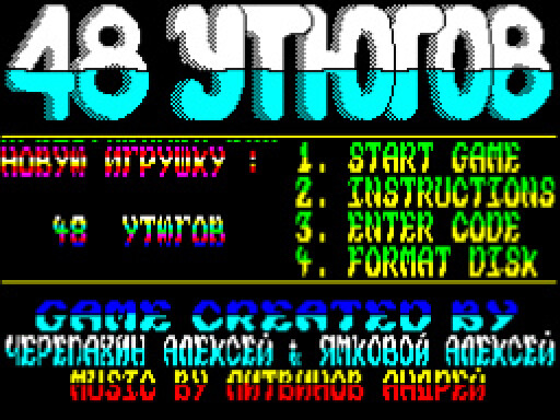 Всё очень красочно и красиво прорисовано, и к каждому уровню, кроме пароля, прилагается оригинальная мелодия. Да и остальная озвучка, в общем, не подкачала. В игре есть подробная инструкция, без которой разобраться с управлением будет весьма непросто. А при чём здесь 48 утюгов — станет относительно понятно лишь к финалу игры. Полагаю, что ценителям серии Dizzy наверняка понравится.