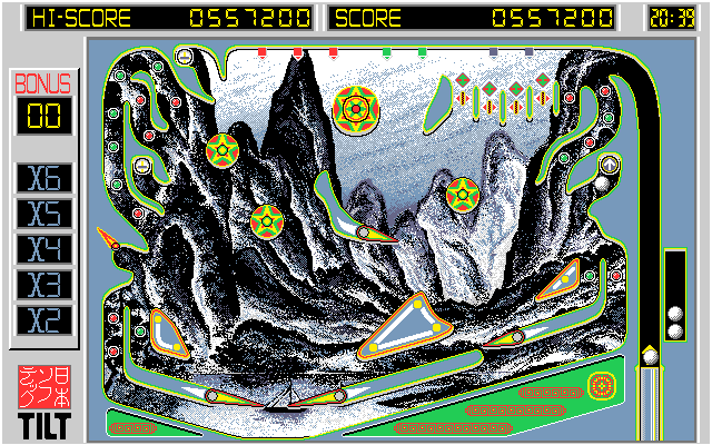 Пожалуй, «поговорим» - это слишком громко сказано. На первый взгляд может показаться, что перед нами в плане геймплея самый обыкновенный пинбол. Запускаем шарик, набиваем очки, откидываем его флипперами и не даём упасть в яму. При желании можно также толкать стол. Только вот в процессе обнаруживается целая прорва специфических мелочей. Например, если пинбольный шарик коснётся красного шипа с алым кружком на конце, то запустится игровой автомат (слот-машина), которая принесёт энное количество очков в зависимости от выпавшей комбинации. Также на поле присутствуют ловилки, захватывающие мячик. Если уж он туда попался, то приходится расчехлять следующий, чтобы им высвободить первый. Всего в игре три разных стола с двумя или четырьмя флипперами, переход между «уровнями» осуществляется через попадание шариком на круг с синей стрелкой. При выбивании особых последовательностей между флипперами появляется своего рода защитная сфера, что не даёт шарику упасть. Это здорово облегчает жизнь. Графика симпатичная, динамика высокая. Казалось бы, ничего не предвещает беды. Но во многих бочках мёда есть ложка дёгтя. И тут в том числе. Самая большая местная проблема – слишком пёстрые столы, на которых трудно разглядеть шарик, – слишком уж всё рябит. Музыка очень на любителя. Уши не режет, но через минут двадцать её захочется выключить насовсем. Ах да, так сделать в самой игре нельзя… Управление следующее: Z – левый флиппер, / - правый, Shift – запуск шарика, Space – толчок стола.