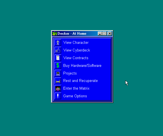 Вы Хакер, живущий в XXII веке. У вас, конечно, есть реальная жизнь, но она второстепенна, основная же проходит в Матрице. Имея компьютерную дэку с софтом, навыки и обновляющийся список заданий по взлому, вы бороздите сеть, зарабатывая деньги на контрактах и прокачивая себя. Деку можно апгрейдить, а новый софт — покупать, писать самому или красть на сетевых архивах. Программы разнообразны: атакующие, защитные, поисковики по архивам, расшифровщики и дешифровщики, приманки и зеркала.