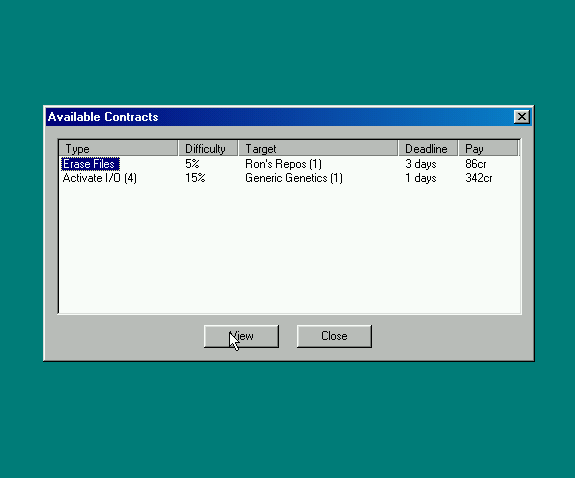 Задания генерируются случайно, но плюс-минус подстраиваются под ваши навыки. После подписания контракта, проверив программы и морально настроившись, Хакер отправляется в Матрицу, а именно на сервер по заданию. Схема последнего генерируется случайно и выглядит как группа комнат, соединённых каналами. Каждое из помещений отвечает за что-то определённое: например, одно будет портом ввода-вывода, другое — файловым хранилищем, а третье — хабом для перехода с защитными вратами. По всему серверу ходят программы-полицейские, у главного мэйнфрейма дежурит усиленная охрана, а в файловых хранилищах притаились программы-шифровальщики.