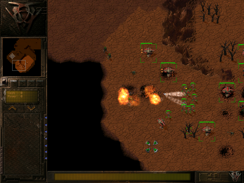 На мягкой поверхности - к примеру, на грязи - остаются следы от гусениц танков. Очень милый эффект, появившийся еще в эпоху Dune 2, к сожалению редко применяемый.