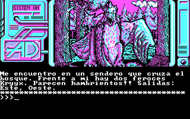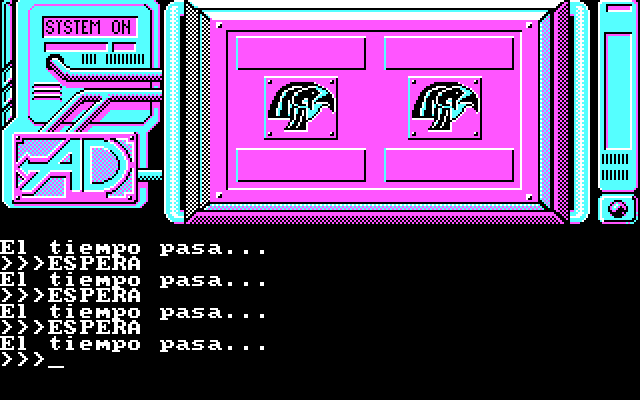 Испанская (и, конечно же, исключительно испаноязычная) текстовая адвенчура с графикой, вышедшая в 1987 году на Amstrad CPC, Commodore 64 и ZX Spectrum и только спустя два года добравшаяся до IBM PC. Такая «выдержка» пошла игре однозначно на пользу: несмотря на заведомо скудную CGA-картинку в непритязательной бирюзовой палитре, PC-иллюстрации отличаются значительно возросшей детализацией, основательно превосходя пусть и полноцветную, но до примитивности простенькую графику с остальных платформ. Однако и за такие улучшения приходится платить: этими самыми иллюстрациями снабжены отнюдь не все локации, а только их половина или даже меньше. В остальных случаях нам придётся лицезреть не самую живописную металлическую панель, зачем-то украшенную двумя соколиными головами, напоминающими о боге Горе.