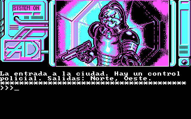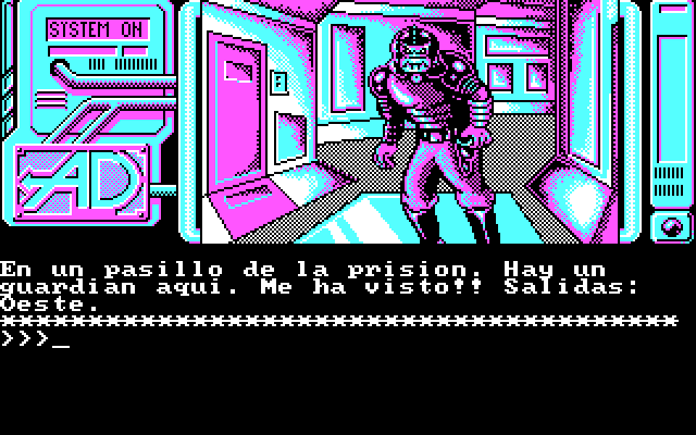Интерфейс игры идентичен таковому из давно уже представленных на сайте творений тех же авторов – «Don Quijote» и «Los Pajaros de Bangkok»: движок-ветеран по имени Graphic Adventure Creator никак не может похвастаться особыми интеллектуальными способностями своего парсера. Все команды отдаются вручную с клавиатуры: для перемещения используются N (Norte), S (Sur), E (Este) и O (Oeste), для просмотра инвентаря – I (Inventario); из технических операторов стоит упомянуть привычные Save и Load, позволяющие соответственно сохранить и загрузить свой прогресс (доступно пять посадочных мест), а также Fin для выхода в систему. Пригодятся в странствиях по чужой планете и такие глаголы, как Abre, Aprieta, Coge, Cura, Deja, Dispara, Entra, Pulsa, Sal... Можно будет и пострелять, обзаведясь заряженным пистолетом и набрав на клавиатуре «Dispara pistola». Но особое внимание следует обратить на команды R (Redescribe) и D (Detalla): дело в том, что, во-первых, описание текущего помещения здесь предельно краткое, так что следует практически всегда и сразу же запрашивать у игры более подробную информацию при помощи D. Во-вторых, изменение ситуации в результате каких-либо наших действий – включая даже простейший внимательный осмотр чего-либо, за который отвечает глагол Examina, – на экране по умолчанию опять-таки не отображается, т. е. после что такого исследования, что, скажем, открытия какого-нибудь шкафчика необходимо всякий раз запрашивать повторное описание локации командой R.