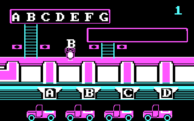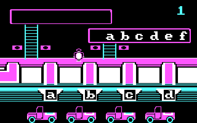 Всё игровое пространство умещается на одном экране. На среднем ярусе располагается наш пингвин, который должен забираться за буквами по двум лестницам: по той, что повыше, — за заглавными, а по той, что пониже, — за строчными. Внизу находятся туннели для отправки литер к четырём грузовичкам, каждый из которых наглядно демонстрирует свои требования. Принесли правильно все четыре буквы — автоколонна убывает, преобразовывает свой груз в здания и возвращается за новой порцией. Постепенно правила немного усложняются: строчные и заглавные буквы начинают чередоваться, затем нужно складывать уже слова (всё так же из четырёх знаков), а в финале — составлять их самостоятельно. Всего присутствуют восемь уровней, и любой человек, имеющий самые базовые знания английского языка, справится с ними минут за пятнадцать.