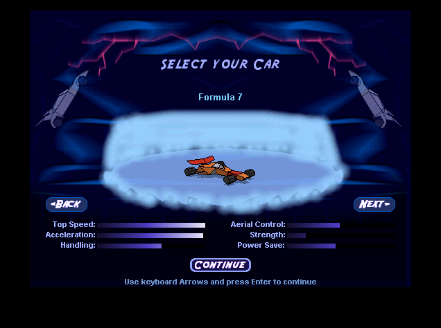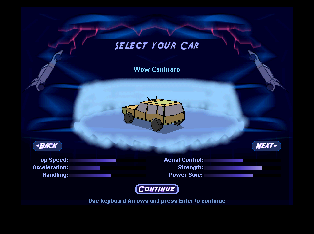 Ещё один индикатор, за которым необходимо внимательно следить, – “Damages”. Повреждения происходят либо от столкновений с машинами оппонентов, либо от недостаточно техничных приземлений при выполнении тех самых “stunts”. Чтобы убрать накопившиеся повреждения, на любой трассе всегда есть один трамплин с висящим над ним большим кольцом, внутри которого видны электрические разряды. Здесь необходимо подпрыгнуть и проскочить сквозь кольцо – ваши повреждения будут устранены!