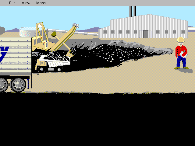 На экране перед нами предстаёт вид кабины водителя изнутри в перспективе от первого лица – в 16-цветном VGA c разрешением 640×480. Примерно треть этого пространства занимает окно с видом на собственно локацию – дорогу или урбанистический пейзаж со всеми подобающими достопримечательностями. Верхняя стандартная строка Windows насчитывает три раздела: в меню «File» ожидаемо дозволяется сохранять и загружать игру, просматривать титры и выходить как в систему, так и в главное меню; в последнем случае там появляется ещё и возможность начать всё заново. Раздел «View» демонстрирует, кроме прочего, информацию о наших расходах – на топливо, на жильё и на еду во время остановок, на ремонт после всевозможных аварий и др.; при этом с нас ещё и автоматически снимают по 50 долл. за каждый виртуальный день – это некие «обычные» траты на обслуживание грузовика. Общий же денежный запас, как ни странно, формально ничем не ограничен и нигде не отображается, – однако неявной целью игры оказывается выполнить свою миссию с как можно меньшими расходами!