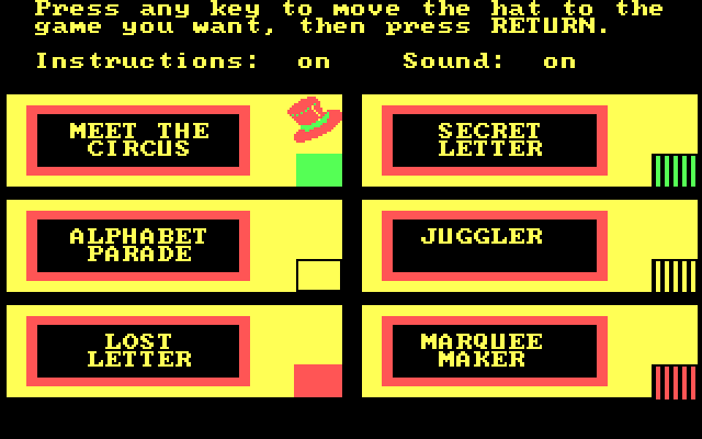 Набор активностей для пользователей самого юного возраста (до семи лет), призванный в развлекательной форме познакомить их с буквами английского алфавита. «Alphabet Circus» изначально вышла в 1984 году на Apple II и Commodore 64, – что побудило издателя перевыпустить её спустя целых три года ещё и для IBM PC/PCjr, совершенно непонятно, ибо в данной инкарнации игра умудряется выглядеть даже хуже оригинала: и на «старшем», и на «младшем» из этих ПК под управлением DOS четырёхцветная красно-зелёная палитра смотрится до обидного невыразительно.