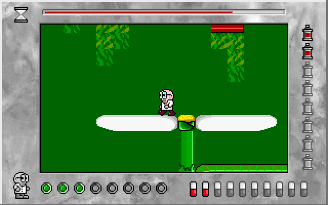 Перспектива отображения – вид сбоку; каждый уровень – это лабиринт из платформ, представляющих собой в том числе и листья и лепестки различных растений (на удивление ровные и негнущиеся). Управление реализовано посредством как клавиатуры, так и джойстика: предпочесть одно из этих устройств можно в главном меню при помощи соответственно «F1» и «F2»; кроме того, «F4» отключает звук, «F5» выводит в систему (а точнее – в общее меню сборника-журнала), тогда как «F3» позволяет при желании переопределить назначение клавиш. По умолчанию всё выставлено следующим образом: «O» и «P» отвечают за движение соответственно влево и вправо, а «Q» и «A» активируют два разных вида прыжков – «высокий» (с акцентом на движение вверх, чтобы можно было запрыгнуть на какую-либо платформу выше) и «длинный» (более подходящий для того, чтобы преодолеть очередную пропасть на одном уровне с протагонистом). «Пробел» отвечает за «выстрел» инсектицидом (при условии наличия хотя бы одной канистры с этим последним в инвентаре героя, которая при этом расходуется), «F1» ставит весь процесс на паузу, «F2» отключает звук, ну а «Esc» позволяет завершить игру (и традиционно не поддаётся перенастройке).