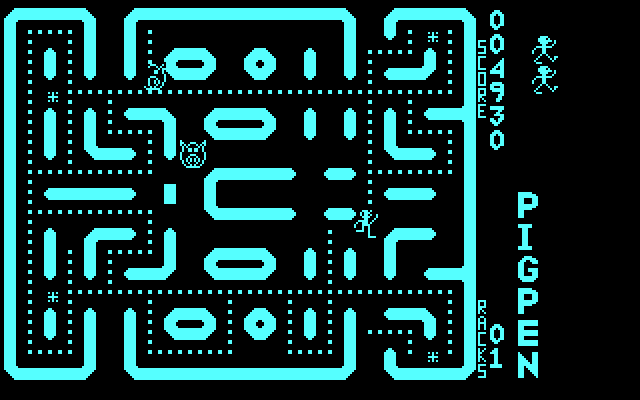 Начало 1980-х – это эпоха Пэкмена: жёлтый кругляш очаровал не только игроков, но и разработчиков, массово бросившихся плодить многочисленных клонов, самым удачливым из которых можно, пожалуй, назвать PC-Man. Однако были и другие коммерческие попытки повторить успех японцев, которые не удостоились внимания широкой общественности и остались лишь объектом интереса любителей компьютерноигровой истории, то есть нас. Именно в таком разрезе и посмотрим на Pig Pen.