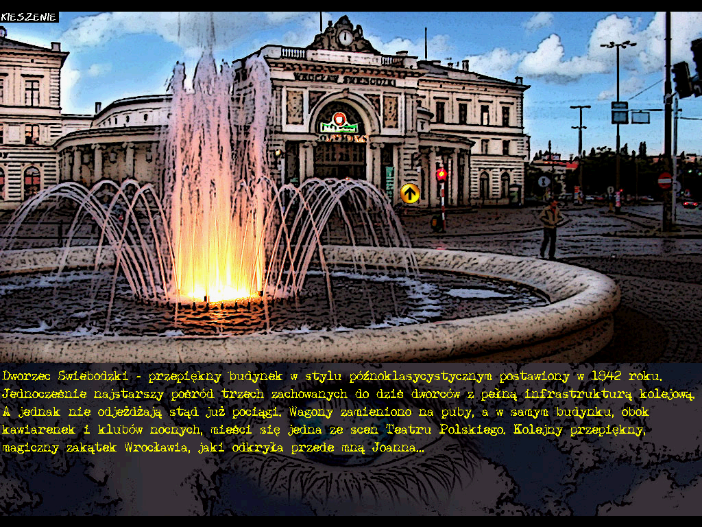 Стоит также обратить внимание, что сохранять игру разрешается только на трамвайных остановках: таковые представляют собой карту Вроцлава с миниатюрами доступных для быстрого перемещения мест. Изначально – после того как мы, прибыв на вокзал, сможем добраться оттуда до первого такого транспортного узла – их всего три (включая тот самый уже знакомый нам вокзал), тогда как ближе к концу это число достигает уже восьми. Кроме того, в правом нижнем углу основного окна – повыше панели с текстом – красуется миниатюра в виде книги: это дневник Петра, куда он регулярно записывает все происходящие с ним события. Сюжет разворачивается в целом вполне линейно, хотя временами нам может быть доступно сразу несколько потенциальных действий и мест назначения, – концовок тут, если что, три, однако, разумеется, не все они одинаково оптимальны.