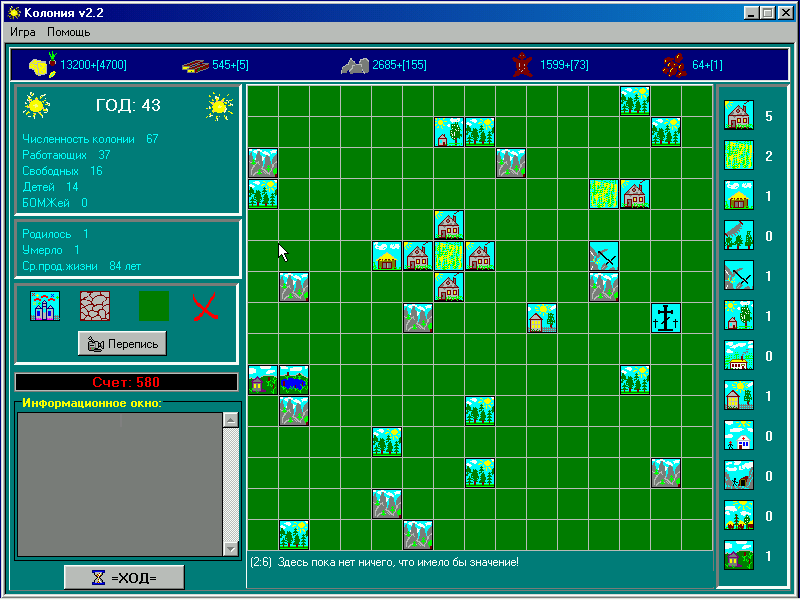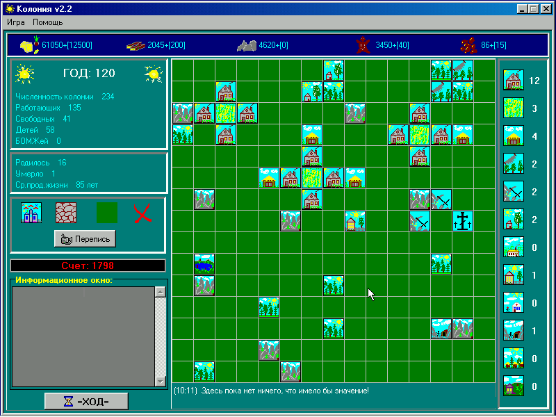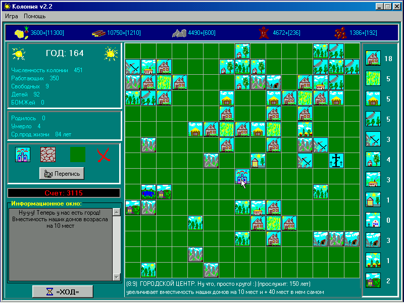 Перед нами оказалась пошаговая экономическая стратегия про колонистов. Выступая в роли старосты нового поселения, необходимо набрать как можно больше очков, означающих (не)успешность и жизнеспособность оного.
