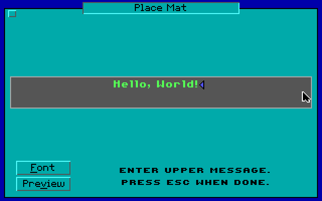 При первом запуске потребуется выбрать режим графики и указать характеристики своего принтера; в дальнейшем вторую часть настроек разрешается при желании изменить в разделе «Setup» главного меню. Остальные пункты которого, помимо выхода в систему, посвящены различным образцам печатной продукции, которую нам предлагается конструировать: приглашениям на вечеринку, плакатам, баннерам и др. Для большинства таких полиграфических объектов можно не только ввести нужный текст, но и выбрать декоративную рамку (доступны двадцать вариантов оформления: воздушные шарики, тортики, сердечки и др.), а также основную иллюстрацию (к услугам пользователя – сорок картинок, изображающих преимущественно Микки и Минни в разных образах, от младенцев до профессоров). Из остального ассортимента – лишь шесть разновидностей шрифтов, по 3–5 размеров кегля в каждой.