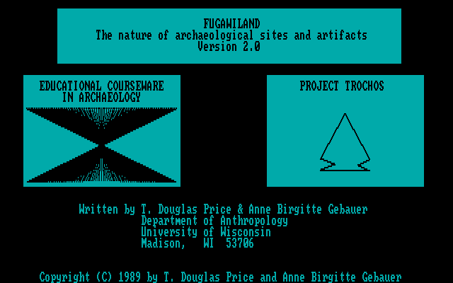 Необычный, а то и уникальный проект – симулятор археолога. Не того, что с кнутом и в шляпе, и не той, что в шортах и с косичкой, а настоящего. Созданный в качестве учебного пособия для студентов одним довольно известным в своей области профессором Висконсинского университета из города Мадисон в США вместе с ассистенткой из Дании. Несмотря на то что «Fugawiland» выдержала в итоге целых три издания, из которых два более поздних, в исполнении для Windows, OS 2 и Macintosh, выпускались крупной американской компанией McGraw-Hill, специализировавшейся в сфере науки и образования, никакой известности среди широкой публики эта программа не снискала (студенты, писавшие на её материале рефераты и курсовые, не в счёт) – и вплоть до начала 2026 г. явно отсутствовала в свободном доступе. К сожалению, собственно учебник объёмом более ста страничек, представлявший собой одновременно иллюстрированное пособие на тему полевой археологии и руководство пользователя к компьютерной программе, на данный момент всё ещё продолжает пребывать вне пределов досягаемости простых пользователей.