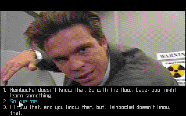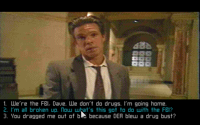 Чрезмерно насыщенные пикселями лица усложняют восприятие, недостаток крупных планов и action-сцен тоже не играет на руку, но, с другой стороны, неплохая игра актёров, затейливые диалоги и ещё не избитая к тому времени тема террористической угрозы вытягивают игру на уровень выше среднего.