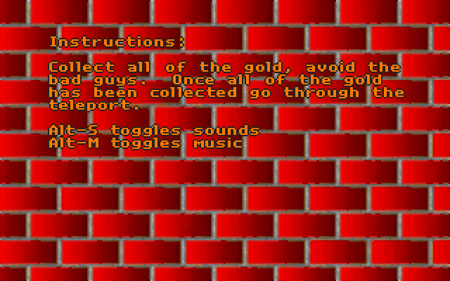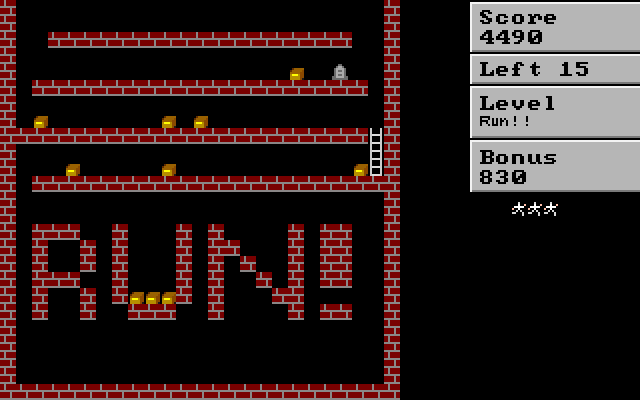 Перед нами оказался внеочередной клон Lode Runner. Игра распространялась по принципу shareware, причём в полной версии предлагались (в зависимости от суммы) 50 или 100 новых уровней и редактор таковых. Вместо сюжета дано простецкое описание происходящего: собираем золото, избегая «плохих парней».