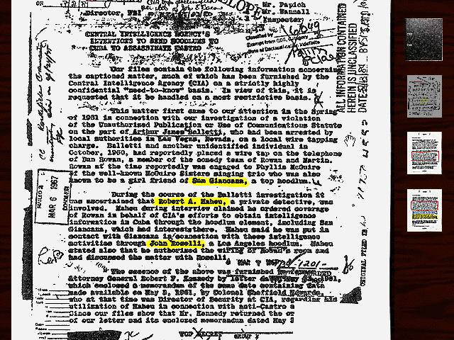 Особый интерес и пикантность игровой ситуации представляет тот факт, что получить всю необходимую информацию, играя только за одного персонажа, невозможно. Более того, куски для создания общей картины преступления у одного героя находятся в истории другого. Например, играя за помощника окружного прокурора, пользователь должен в итоге составить две версии с точки зрения этой специальности. Но информация для них разбросана по прохождению за коронера, журналиста и детектива. Потрясающая идея, делающая игровой процесс очень увлекательным. На практике сложение версий представляет собой составление схемы убийства Мэрилин на компьютере каждого персонажа в его квартире. На мониторе лэптопа — набор из линий, стрелочек, овалов и прямоугольников. В геометрических фигурах присутствует текст — это нечто вроде ключа-подсказки, указывающей на человека, имя и фамилию которого надо правильно ввести с клавиатуры. Эти люди имеют непосредственное отношение к делу: важные свидетели, преступники, соучастники. А в центре всего этого, конечно же, Мэрилин. Вводить понадобится не только конкретных людей, но и мотивы, орудия убийства, некоторые события. Только после правильного набора слов и словосочетаний схема станет постепенно приоткрывать картину преступления. За каждый верный ответ специалисту начисляются баллы, отображаемые в верхней части экрана в виде шкалы от 0 до 100. 100 — это полное решение дела за персонажа. Баллы также начисляются за обнаружение определённой критической информации по ходу прохождения.