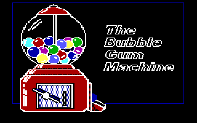Под не самой обычной вывеской скрывается столь же нестандартная забава на филологическую тему, предназначенная для пользователей возрастом от шести лет. Трудно сказать, почему в качестве антуража для своего чисто образовательного проекта авторы выбрали именно автомат по продаже цветных шариков с жвачками, однако заниматься мы здесь будем составлением слов английского языка и поиском к ним рифм. Из графических адаптеров поддерживаются CGA, EGA и VGA, хотя и в последнем случае картинка оказывается 16-цветной, – впрочем, таковая всё равно сводится к изображению той самой вынесенной в заголовок машины, играющей здесь исключительно декоративную роль. Звуковое оформление выполнено силами PC Speaker’а и предлагает нашему вниманию одну небольшую мелодию в заставке да различного рода эффекты в виде столь же нехитрых сигналов.