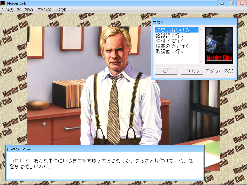Самая первая часть знаменитой японской детективной франшизы J.B. Harold перекочевала в 1996 году на Windows. Изначально вышедшая в ещё более далёком 1986-м на PC-88, игра затем была перенесена на множество других популярных в то время платформ, среди которых MSX, Famicom, TurboGrafx, Sharp X1, MS-DOS и другие. Позже, в середине 1990-х, разработчики из Riverhill Software по какой-то причине не стали создавать ремейк в стиле Full-Motion-Video, как это произошло с последующими частями Blue Chicago Blues и Manhattan Requiem. Однако оригинальная история о расследованиях детектива Джей Би Гарольда всё же претерпела значительные изменения. Переработке подверглось действительно многое. Игра предстала в ином графическом исполнении, художественный стиль стал цветастым и красочным, добавились сюжетные повороты, персонажи и места для посещения. Поразительно, но версия на Windows осталась, наверное, самой малозаметной из всех релизов Murder Club, когда-либо выходивших. Не в последнюю очередь здесь сыграл роль тот факт, что она не была переведена с японского на английский, в отличие от DOS-версии, уже имеющейся на нашем сайте. Тем не менее было бы неправильно не выделить и не описать это улучшенное переиздание классики. Тем более что все последующие, более современные появления Murder Club на Nintendo DS, iOS, PSP, Switch и Android основывались именно на Windows-версии.