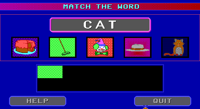 Графика здесь по-прежнему соответствует уровню EGA, однако чёрный фон сменился более приятным для глаз синим; разумеется, управление посредством мыши, как и все фирменные анимации от Flix Productions, оказываются на своих законных местах. А вот игровой процесс, всё так же предназначенный для дошкольников и максимум первоклассников, наверняка покажется бедноватым на фоне, к примеру, «Animated Math»: режим здесь один-единственный. Всё, что нам предстоит делать, – это сопоставлять слова с подходящими им картинками.