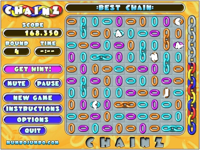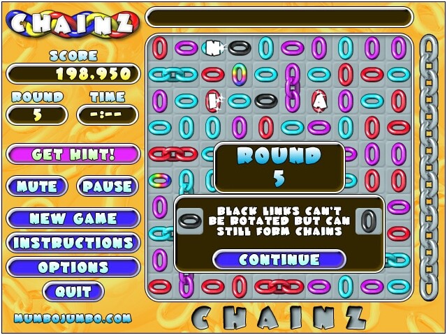 В Chainz есть два игровых режима: «обычный» и «на время». В «обычном» ваша задача — набрать определённое количество комбинаций (визуально это можно отслеживать по заполнению цепочки справа от игрового поля). Если справитесь, то перейдёте на следующий уровень, где изменятся количество цветов сегментов и необходимый лимит соединений для победы. Проиграть можно, только если на поле не останется возможных комбинаций. Второй режим привносит ещё и таймер в одну минуту на прохождение уровня, который пополняется на несколько секунд после каждого сложения на поле.