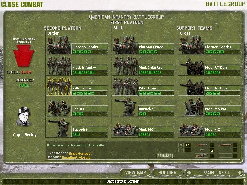 Особенного менеджмента войск нет, можно только управлять теми единицами, что созданы изначально. В состав каждого отряда входят два взвода и одна группа поддержки, всего 15 юнитов. Управление, как и в прошлых частях, осуществляется на уровне отрядов, и здесь ничего нового нет. The Battle Of The Bulge отличилась в другом.