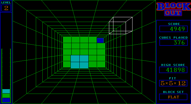 BlockOut – игра для тех, кто хочет развить пространственное воображение и абстрактное мышление. Это головоломка из разряда старых добрых тетрисов. Только играете вы не в двух, а в трех измерениях. Представьте себе четырехгранный «стакан», который вы видите сверху. Сначала медленно, а по мере набора очков всё быстрее, в этот «стакан» падают разнообразные фигуры, сформированные из кубиков. Как вы уже, наверное, догадались, стакан нужно заполнять фигурами равномерно, без дыр и ниш. Как только слой целиком заполнится, он сгорает, принося вам очки. Фигуры можно передвигать по всему объему «стакана», а также вращать по всем трем осям. Игра имеет три уровня сложности: FLAT, BASIC и EXTENDED. Во FLAT фигуры простые и плоские, точно как в Тетрисе. В BASIC фигуры чуть посложнее и формируются не более чем из 4-х кубиков. EXTENDED – самый интересный уровень, где фигуры представляют собой замысловатые гибриды из 5-ти кубов. Двигать фигуры нужно стрелками, а вращать по осям латинскими A, S, D. Сброс фигуры вниз – Space. Желающим попасть в Hall of Fame игры могу посоветовать накапливать по несколько слоев, а потом одновременно их сжигать (это заметно увеличивает количество очков). Ну а если вы исхитритесь сбросить все слои так, что снова увидите лишь чистое дно «стакана», - увидите себя лидером рейтинга.