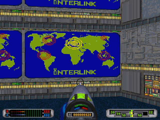 Из новинок стоит отметить следующее. Ну, прежде всего, впервые реализована возможность управления механизмами: танком и летательной машиной. Пусть они спрайтовые, но это было сделано раньше всех в шутерах. Сразу потом такое же будет реализовано в Терминаторе, а пока это было доподлинно впервые. Есть элементы накопления денежных средств, так называемый $кэш$. На эти деньги в оружейном магазине можно покупать «стволы» посерьёзней, а также играть в азартные игры. Мне почему-то это немного напомнило Kingpin’а. В игре много NPC, которые сообщают речевую информацию (почему-то дублирование текстом не реализовали). Есть также повстанцы, которые будут сражаться на вашей стороне. В игре прекрасно реализована троичность противоборствующих сторон. Стороны условно можно разделить: «наши», «корпоративные силы Не-Крома» и «братва». В последнюю категорию входят гладиаторы и уличное отребье, которые к вам настроены недружелюбно лишь потому, что в СМИ сразу же в подробностях рассказали о вашем бегстве из лаборатории, и, разумеется, награда, назначенная Не-Кромом, будет желанным пополнением бюджета любого из подобных оппонентов. Гладиаторы и хулиганы не любят солдат Не-Крома, скорее всего, за творимый ими «беспредел» в родных трущобах, солдаты Не-Крома по присяге обязаны не любить вас, а вас всё отмороженное трущобное отребье не любит по причине уже озвученного вознаграждения за вашу же голову. Отсюда вывод: если встречаются представители сразу трёх сторон в одной комнате, то не надо спешить, спрячьтесь и подождите, пока останется сильнейший, а затем легко добейте этого уже ослабевшего «сильнейшего». Прекрасная иллюстрация китайской мудрости. Ещё из атмосферных «фишек»: например, на второй локации «Трущобы» придётся даже сражаться на арене в роли гладиатора, чтобы обрести полноценную свободу и выйти дальше в город.
