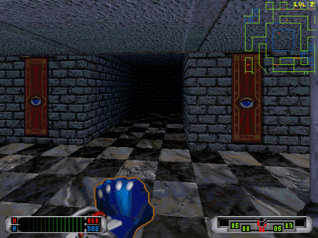 Графический движок игры чем-то сильно похож на Build engine, но это, оказывается, не Бильд. Применён свой двигатель, собственной разработки. Наклонных поверхностей не наблюдается, но в плане карты рёбра полигонов могут изгибаться произвольно, хотя и чувствуется дискретное дробление карты на квадратные сегменты - как в школьной тетрадке. Движок не совсем оптимизирован и тогда был очень требователен к вычислительным ресурсам машины. В отличие от Build engine, которому серьёзная многоэтажность в те годы давалась с большим трудом, в этой игре есть карты, направленность прохождения которых имеет заметную вертикальную составляющую: лестницы на стенах, окна, этажи, опять лестницы... Это всё было достигнуто применением этажей или, правильно выражаясь в контексте этой игры, – уровней (Level). Всего уровней на карте может быть до четырёх. При переходе на уровень (выше или ниже) в верхнем правом углу высвечивается номер уровня. И в лучших традициях игр 2,5D-архитектуры на экран всегда может быть выведена удобная для восприятия карта любого из уровней, где в настоящий момент находится игрок. Так что графический двигатель игры выглядит очень даже солидно по сравнению с другими своими «сверстниками».