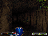 Помимо индикатора жизненных сил имеется ещё второй важнейший индикатор внутренней энергии, которая постоянно генерируется имплантированным кристаллом. Термин для названия этой энергии, уже ставший классическим в RPG, – мана. В игре внутренняя энергия может дополнительно подпитываться из «душ» умерщвлённых вами биологических противников (не роботов). Ненадолго после их смерти появляется вопящее синее привидение. Эта душа как раз и называется Манн-Ра, что довольно созвучно слову мана. Также избытки этой энергии положительно влияют на уровень жизненных сил вашего персонажа. Ещё продумана интересная защита игрока от повреждений. Нет, это не аналог примитивной шутерной «брони», а сложный киберкостюм, который в игре постоянно должен поддерживаться и усиливаться. Чем целее и комплектнее костюм – тем меньше убыток жизненной силы при попаданиях в разные части тела. Теперь важнейший ход в геймплее. Оружие у вас будет принципиально двух типов: первое – обычное, а именно: собрана вся линейка предметов «человекоистребления» - от сабель и секир до «супернавороченных» бластеров, а второе оружие – работающее на внутренней энергии и излучающее из вашей перчатки различные сгустки маны: файрбол, боль, шок и так далее; естественно, патронов к такому оружию, в отличие от технических средств, не требуется. Но с каждым выстрелом показатель внутренней энергии быстро уменьшается, и в самый ответственный момент боя придётся срочно бежать за угол и ждать – когда же медленно восстановится мана хотя бы ещё для одного выстрела из перчатки. Я думаю, такое разделение оружия потенциально гарантирует жёсткий баланс, который в игре действительно наблюдается не в пользу игрока. То есть с наличием вооружения, не требующего патронов, становится менее критичной настройка карт хотя бы в плане расстановки боеприпасов к high-техническим средствам вооружения. Поскольку число типов вооружения далеко переваливает за цифру 10, классически «подвесить» их на цифровые клавиши оказалось невозможно. Поэтому выбор оружия производится в два нажатия: F1 или F2, соответственно, тип - «ствол» или мана, а затем вторым нажатием оно выбирается из предложенного списка. Это не совсем удобно в бою, но терпимо.