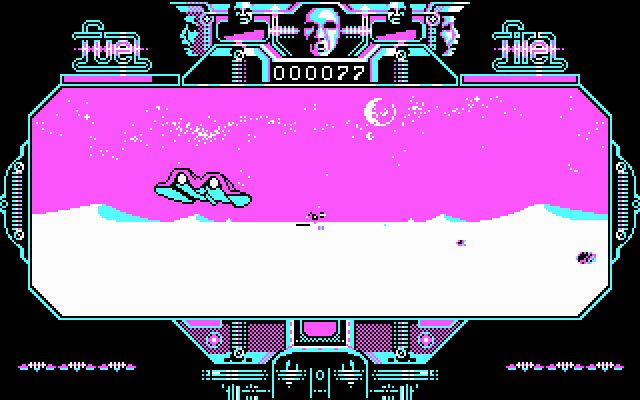 В остальном - всё просто. S и X управляют высотой нашего летательного аппаратика, B и N - движением вбок. Пробел отвечает за стрельбу. Если игра виснет, придётся отключать звук. Примечательно, что практически ЛЮБЫМ антивирусом ЛЮБАЯ версия этой игры расценивается как особо опасный зверь. Собственно, таковым она и является - запуск её на живом ДОСе нередко приводит к потере системных файлов. Необъяснимый подпространственный феномен, которым мучаются офисные работники Советского Союза с момента выхода игры и по сей день. Точно знаю, что как минимум в одном Министерстве про её эту особенность легенды ходили...
