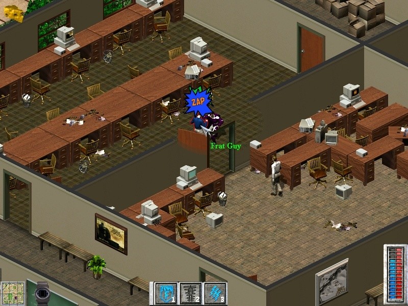 Есть в игре и противники - чем мы сильнее, тем и они сильнее. Сначала это просто люди - какие-то хулиганы и прочие асоциальные элементы, но потом уже появятся не совсем люди... Перед сражением можно выбрать тот способ, которым есть желание уничтожить врага, ну а потом - держись, родная мышь!..