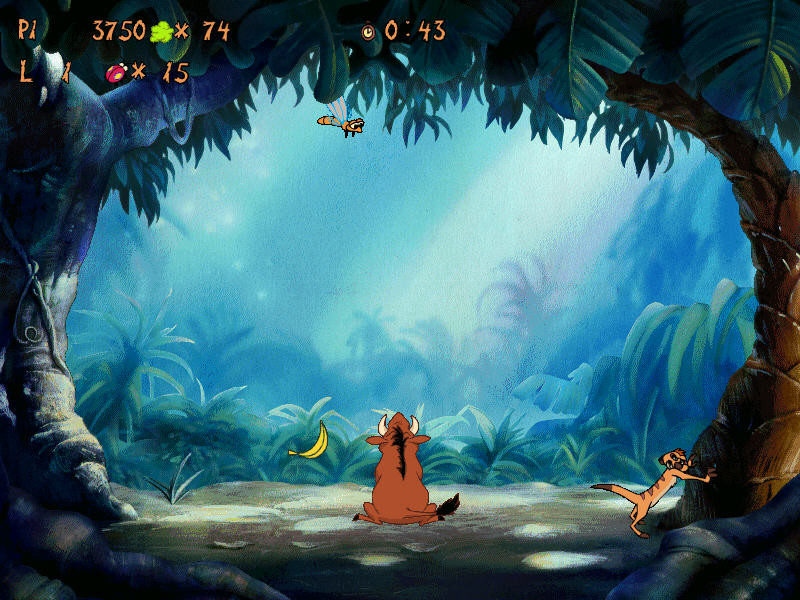 Однако ценен в первую очередь не набор этих игр, а то, на каком уровне это всё исполнено. Графика в игре мультипликационная и, надо сказать, просто великолепно смотрится даже сейчас. А ведь это 1995 год! Далее - игра потрясающе дружелюбна: ещё бы, ведь она делалась для детей! После красивейшего вступительного ролика вы оказываетесь в месте выбора мини-игр; так вот, Тимон и Пумба в течение нескольких минут будут рассказывать о том, что происходит, а потом предложат вам выбрать игру. Выберете - они подбегут к соответствующей позиции (да-да, это всё тоже оформлено!). Затем перед каждой игрой - опять их вводный и довольно длинный инструктаж, а потом - подробное описание всех клавиш, которые вам в данной игре пригодятся. Напоследок - звуки и музыка. Озвучено всё, что только можно, ну а замечательная, разнообразная и весёлая музыка будет сопровождать вас постоянно в течение любой игры. Немного я знаю игр, которые были бы сделаны столь же качественно и с любовью, были бы столь замечательны во всех отношениях.