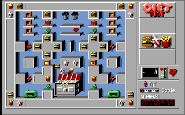 По геймплею Diet Riot сильно напоминает старого доброго Pac-Man’a, но её язык не повернется назвать «клоном». Игрушка оригинальная и занятная - а что ещё нужно от подобного жанра?