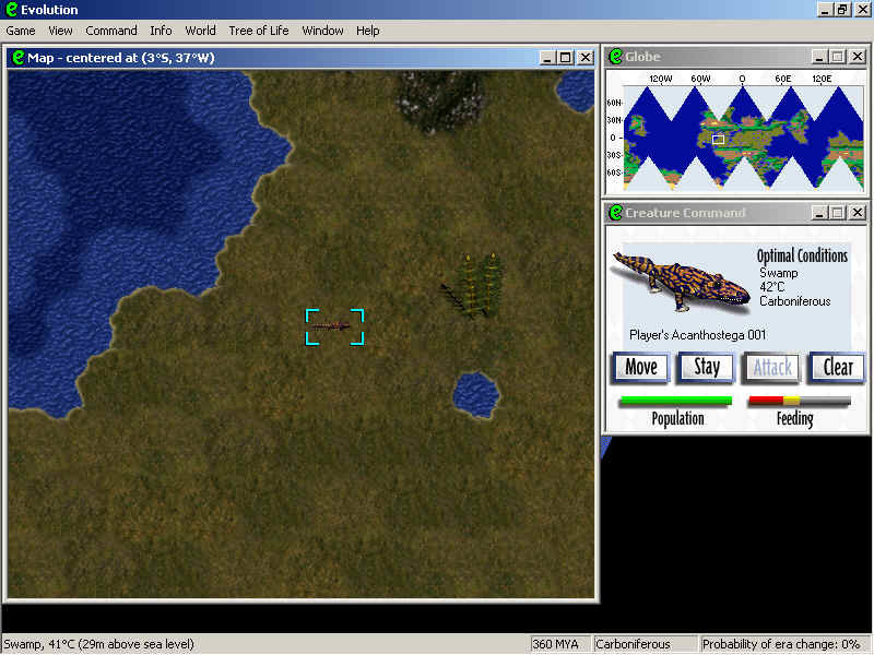Evolution – стратегическая игра, которая соединяет в себе черты Civilization и подобных игр с SimEarth, добавляя ещё немного «своего», что в совокупности и делает игру столь необычной. Однако по этой самой «необычности» ни один из её компонентов не сравнится с «сюжетом» игры. У вас есть древнее наземное животное, которое является первой ступенью Новой эволюции – той, которую начинаете вы. Через века и эры должны будете вы провести популяцию, начало которой даст то существо, и привести её к вершине эволюции – разуму. Но это будет не человеческий разум. Докажите, что альтернатива есть всегда.