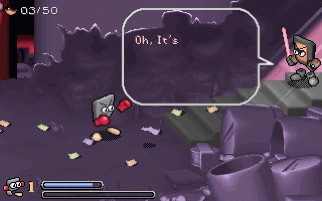 Как и любому процессору, двум главным героям необходимо следить за перегревом. Чем больше ударов они наносят и получают, тем больше они раскаляются, снижая свою эффективность. Чтобы избежать этого, лучше всего некоторое время находиться без движения. Но в бою подобная роскошь непозволительна, так что на помощь вам придут стаканчики с соком и небольшие шарики, которые выпадают из поверженных противников. Эти шарики кроме охлаждения также лечат вашего персонажа, а набрав достаточное их количество, он поднимает свой уровень (всего их пять), становясь более живучим, способным наносить гораздо более сильные удары и связывать их в более длинные комбы.