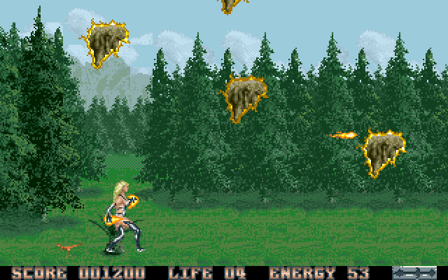Аркадная игра за женщину сомнительного нрава (судя по её одежде), которой самой судьбой предписано стать Избранной и спасти планету от чудовищного монстра, именем которого названа игра. Причём планету не свою – чужую: какие-то существа похитили нашу героиню и высадили на планете с динозаврами! Именно сражения с различными видами этих животных (в том числе летающими) с помощью не то бластера, не то чего-то похожего и составляют основу геймплея игры.