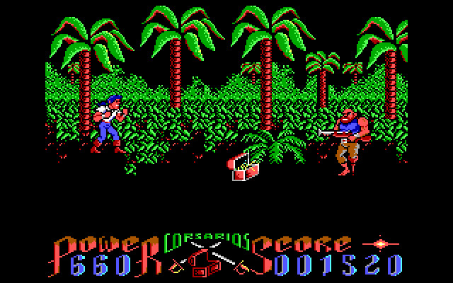 Первая игра – сражение с пиратами на острове. Наш герой один и не имеет вообще никакого оружия, кроме собственных рук и ног, тогда как пираты вооружены саблями и даже ружьями. Выиграть можно только за счёт собственной смекалки и того, что запас жизни и сила удара нашего персонажа таковы, что Халк и Супермен должны призадуматься. После убийства всех пиратов с острова можно уплыть на лодке. Почему всё это происходило и для чего – не объясняется. Возможно, я чего-то не понял, но мне первая часть показалась скучной и неинтересной.