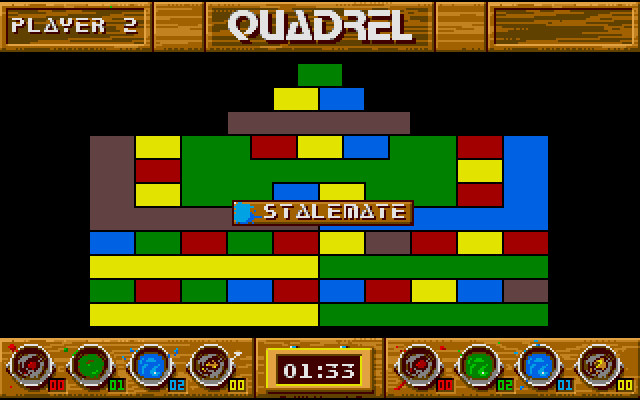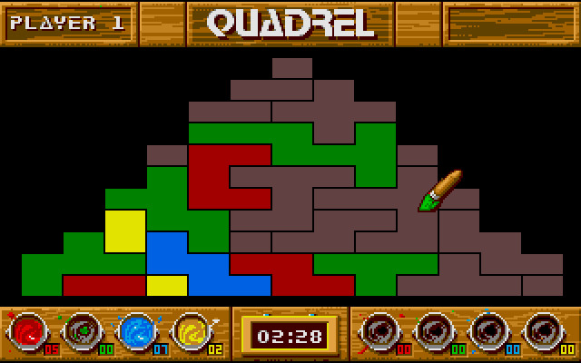 Графически всё это выглядит красиво и достаточно ярко, игра поддерживает три адаптера (CGA, EGA, VGA). Сам игровой процесс графически, конечно, относительно беден, что, впрочем, адекватно для жанра и конкретно данной игры и ничуть не мешает наслаждаться процессом. Quadrel – прекрасный образец старого нетривиального паззла, по-настоящему сложного, но прекрасно реализованного и увлекательного, способного доставить ценителю интеллектуальных развлечений на экране монитора немало приятных вечеров.