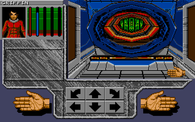 Действие игры происходит в реальном времени и иногда даже чуть-чуть напоминает action, тем более что обозреваем мы сей мрачный мир с видом от первого лица. Однако перемещение ограничено количеством шагов за раз, а возможность поворачиваться есть лишь в восьми направлениях (они указаны стрелками под основным игровым экраном). Кстати говоря, только нажатия на эти стрелки и дают возможность перемещаться.