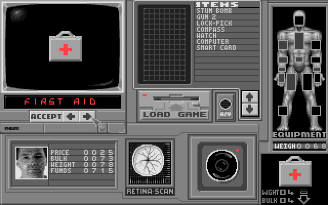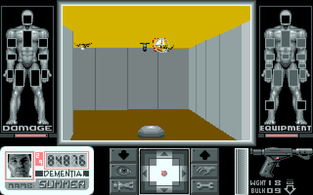 С места в карьер, как в среднестатистическом раннем шутере вроде тех же Hovertank 3D (1991, DOS) и Catacomb 3-D (1991, DOS), отправиться в путь не дадут, ибо, по сути, здесь мы имеем нечто куда более специфическое. В то время как упомянутым работам на момент 1991 года в большей степени ещё была близка чисто аркадная специфика, Corporation представляет собой сущность иного рода. С одной стороны, гибрид типового набора псевдотрёхмерных (и не псевдо-) экшенов тех лет. С другой - в целом окончательно утвердившихся к тому моменту отдельных классических элементов RPG. С третьей - специфика взаимодействия с инвентарём и слотами (что позже назовут immersive sim), как, впрочем, и сам интерфейс, во многом роднит этот проект с System Shock (1994, DOS). Но к сути. Во-первых, нужно выбрать одного из предложенных героев. Во-вторых, каждый из них достаточно ощутимо отличается как набором типовых характеристик в диапазоне от понятного контекста усреднённой RPG - сила, выносливость или здоровье - до набора навыков, среди которых, в частности, встречаются такие, как "электроника", "механика", "медицина", "псионика". Сумму специфики упомянутого, как и фактическую полезность в принципе, можно будет выяснить только опытным путём. В-третьих, отправиться с голыми карманами и руками в бой, конечно, можно, но неразумно. На этот случай у каждого из героев изначально имеется 1200 единиц местной валюты, которую можно потратить по своему усмотрению. Среди доступного имеется: броня, в диапазоне от лёгкой до тяжёлой, где последняя не только весит больше, но и требует регулярной подзарядки и, как следствие, батареек; то или иное оружие, исходно представленное пятью видами (рекомендуется брать энергетическое); а также аптечки, бомбы, противогаз, компьютер, автоматическая отмычка, маска, химикаты и вещества неопределённого предназначения, пара имплантатов вроде механической руки, экзоскелет, предмет для подзарядки, визор и его инфракрасный собрат и - в качестве своеобразной вишенки на торте - реактивный ранец. Унести всё добро тот или иной герой не сможет ни физически, ни фактически - не хватит ни денег, ни слотов. Поэтому выбирать нужно с умом. Методом проб и ошибок можно выяснить следующее: главное - прихватить с собой пистолет, который можно будет заряжать, компьютер (без него не будет доступна карта уровня, как следствие - заблудиться в трёх однотонных стенах можно будет ещё на старте), а также отмычку, без которой взлом и обход отдельно взятых закрытых дверей усложнится на порядок. Всё остальное сугубо опционально и зачастую не имеет особой практической пользы. Помимо этого, отдельно взятые расходники и предметы можно будет находить на уровнях по ходу их исследования.