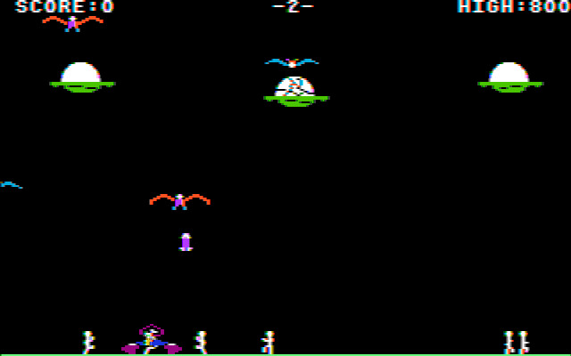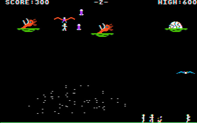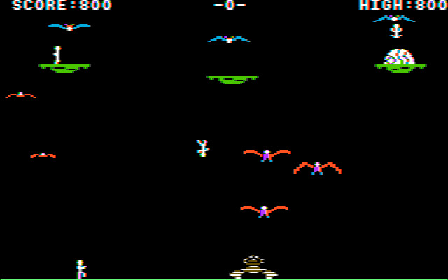 Игра вышла в 1983 году. Но по графике этого никак не скажешь. Это графика минимум 1986 года! Поразительная детализация анимации в буквальном смысле притягивает взгляд. Вот птица отложила яйцо. Вот оно покрывается трещинами. Вот из него появляется гигантская алчущая птичья морда, в которую заботливая мамаша (или папаша) швыряет извивающееся маленькое человеческое тело, которое птенец почти мгновенно проглатывает. А иногда (крайне редко, но один раз было) птицы начинают «разделывать» человека в гнезде живьём! Не самое приятно зрелище, конечно. Но всё-таки графику нельзя не похвалить – для 1983 года это по-настоящему выдающееся достижение.
