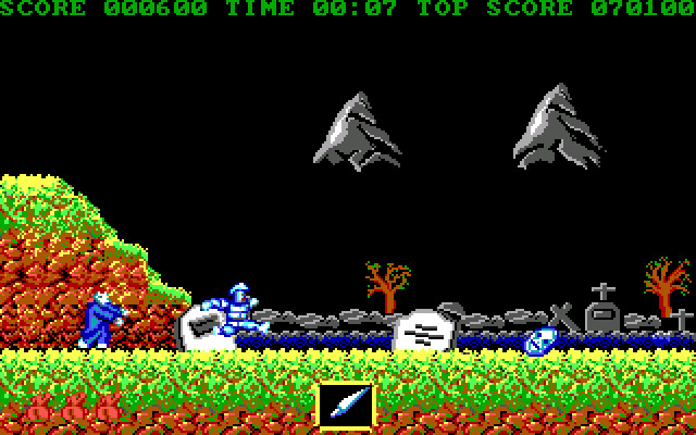 Геймплей стандартен – вид сбоку, убиваем врагов, собираем бонусы, но расстраивает то, что каждый уровень жёстко ограничен по времени – только три минуты на прохождение. Сами уровни очень разнообразны: лес, горы, деревня, пещеры… Из бонусов можно особо выделить метательные кинжалы и бомбы, обладающие просто разрушительной мощью. Что также необходимо отметить – очень слабое здоровье нашего героя. Он носит доспехи, которые способны выдержать один удар монстра. Второй удар всегда смертелен. Если доспехов нет, то любой удар смертелен. Отсюда вывод: иметь доспехи надо всегда, а сражаться – только в дальнем бою (посредством метания копий или тех же кинжалов).