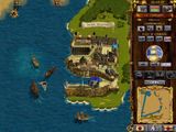 Ещё один сюрприз – мы можем строить город! Точнее, не вполне город, а небольшой опорный пункт из четырёх зданий: крепость (с пушками, предназначена для защиты поселения от врагов, её можно улучшать), маяк (сигнал тревоги), гавань (самое важное здание – именно там делаются новые корабли, и там же доступны для исследования новые технологии, с помощью которых корабли можно улучшить) и наш дворец (его наличие повышает мораль солдат). Никаких ресурсов в привычном виде этого слова нет – деньги мы добываем грабежами кораблей и выполнением заданий нашей «метрополии» (собственно, поэтому их и бывает несколько на каждую миссию). Ещё раз подчеркну, что почти всё, что покупается, можно и захватить (то есть в теории можно и в одной из первых миссий, обладая ещё очень слабым флотом и доступными типами судов, захватить какой-нибудь огромный корабль).