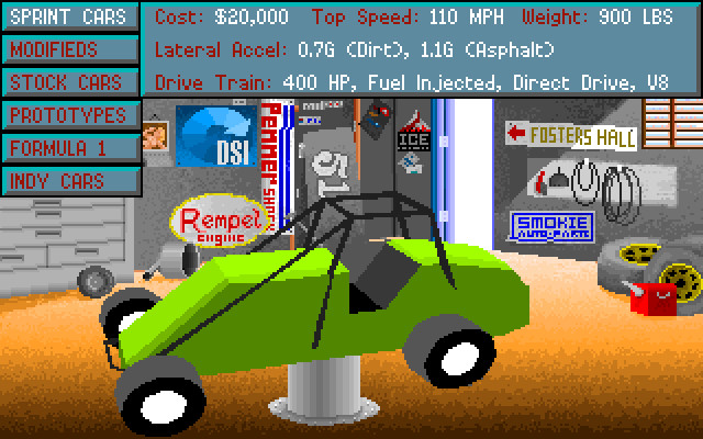 В начале игры у нас есть двадцать тысяч долларов – на эти деньги нужно купить машину «первого класса» (то есть самого низкого в рамках игры), потом участвовать в заездах. В случае победы получим денежный приз, на который можно будет купить машину очередного «класса» (всего типов машин в игре шесть).