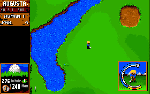 Сказать про эту игру можно не так много. Сначала можно выбрать клуб, за который выступает наш игрок (изначально он уже прописан, но его можно поменять), потом начинаем играть. Суть игрового процесса состоит в «оттачивании» двух действий: поднятия клюшки под нужным углом и нанесения удара по мячу. Из «агрессивных сред» имеются песок и вода. Ландшафт на игру не влияет никак – здесь его просто нет (как и каких-либо других моментов, могущих «вытянуть» игру до симулятора, - того же ветра, скажем).