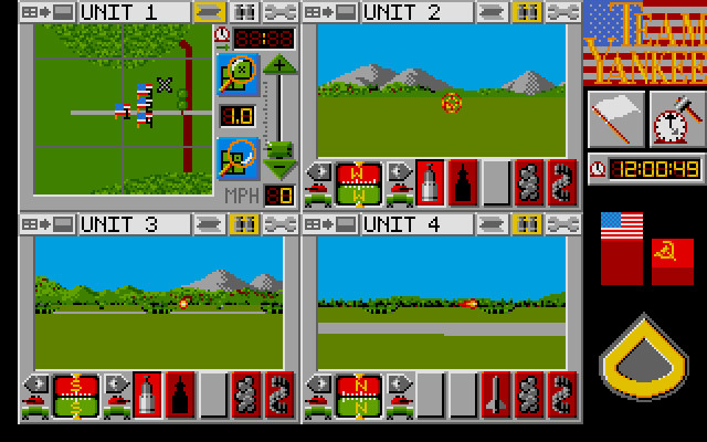 Старый танковый симулятор, сделанный по книге (!!!). Вашего героя в этой игре зовут Шон Бэннон (Sean Bannon), он является командиром мощного танкового взвода с различными моделями танков (Т-62, Т-72, М1, М2, всего в отряде может быть как раз четыре танка). Танки вооружены огромным количеством оружия (у настоящих танков столько нет, подробнее говорить не стоит – увидите сами). Уточню, что в игре представлены не только эти четыре модели танков, а что именно на конкретную миссию можно взять только четыре боевые единицы.