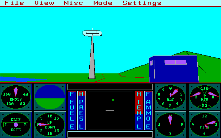 Если коснуться названия, то игру можно назвать трёхмерной с большой натяжкой, но определённая детализация ландшафта в ней присутствует, и некоторые его элементы (различные для разных миссий) даже кажутся трёхмерными, плюс – есть возможность масштабирования изображения, да и вертолёт наш со стороны смотрится неплохо, но вот приборная панель, напротив, прорисована не слишком хорошо, а управление сложно отнести как к простому, так и к сложному (хотя есть возможность летать чуть ли не во всех направлениях). Интересно, что поддерживаются самые разные графические адаптеры – от Hercules до EGA. Можно играть (то есть сражаться) вдвоём, причём по модему (для того времени это было в диковинку, конечно). Возможно, именно на этот режим игра и была ориентирована.