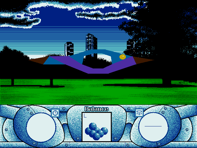 Описать эту игру крайне трудно (такие вещи встречаются). Вам, если выражаться кратко и не вполне точно, предстоит управлять шаром («катить» его), который необходимо провести из точки A в точку B за определённое время по той или иной поверхности, при этом меняя положение этой поверхности (делается с помощью мыши) и соблюдая Баланс. Поверхности эти явно вдохновлены трудами каких-нибудь выдающихся немецких философов (придёт ли вам в голову почти плоский домик, висящий в пространстве на фоне леса?..), а самое главное – со всех них очень легко «упасть», будь это плоскость, нечто трёхмерное или, например, верёвка с бельём (тут есть и такой уровень, и много чего ещё).