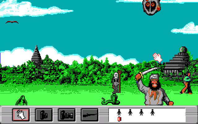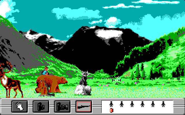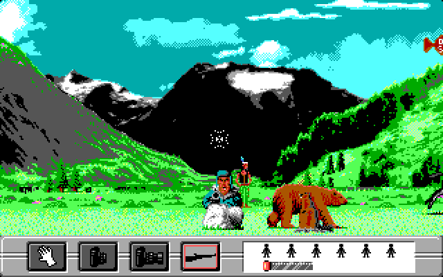 Но, к сожалению, отнюдь не все люди в этом мире настроены так же мирно и дружелюбно по отношению к братьям нашим меньшим, как вы. В каждой из областей вы встретите огромное количество охотников (хотя будут встречаться и мирные люди) – как из аборигенов тех мест, так и из богатых белых бездельников, которые развлекаются убийством животных. Они появляются на экране, внезапно выскакивая откуда-то снизу и атакуя вас, но, к счастью, от их атак можно успеть увернуться, а можно и ответить – ведь у вас с собой есть ружьё.